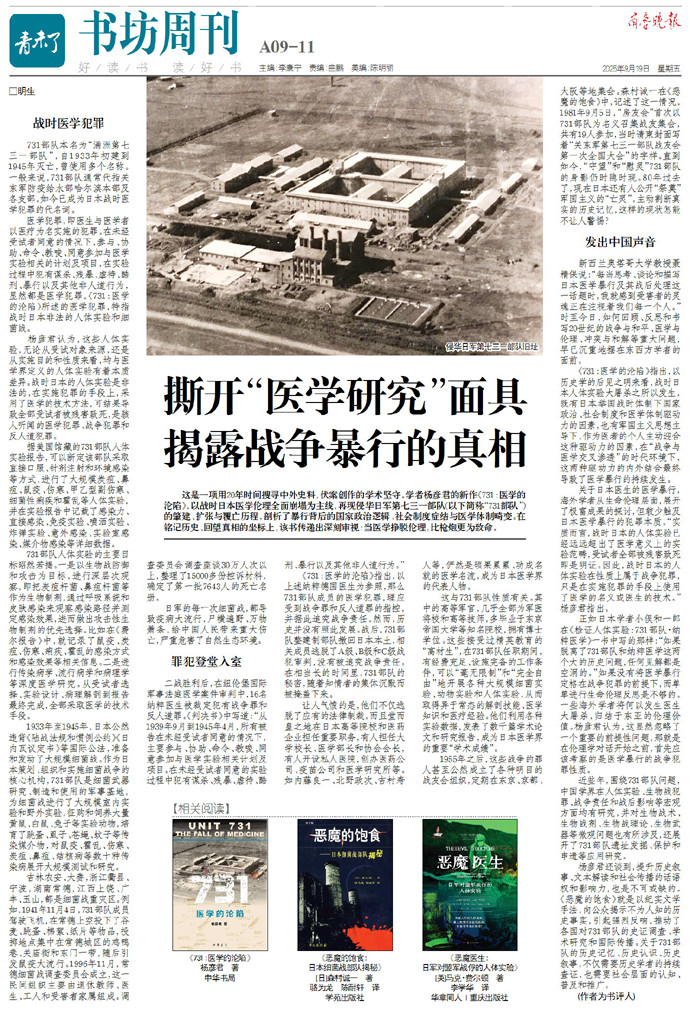 新西兰奥塔哥大学教授聂精保说:“每当思考、谈论和描写日本医学暴行及其战后处理这一话题时,我就感到受害者的灵魂正在注视着我们每一个人。”时至今日,如何回顾、反思和书写20世纪的战争与和平、医学与伦理、冲突与和解等重大问题,早已沉重地摆在东西方学者的面前。